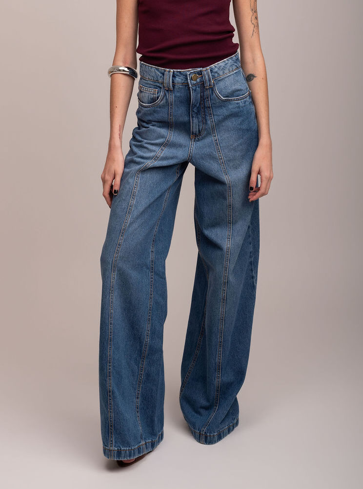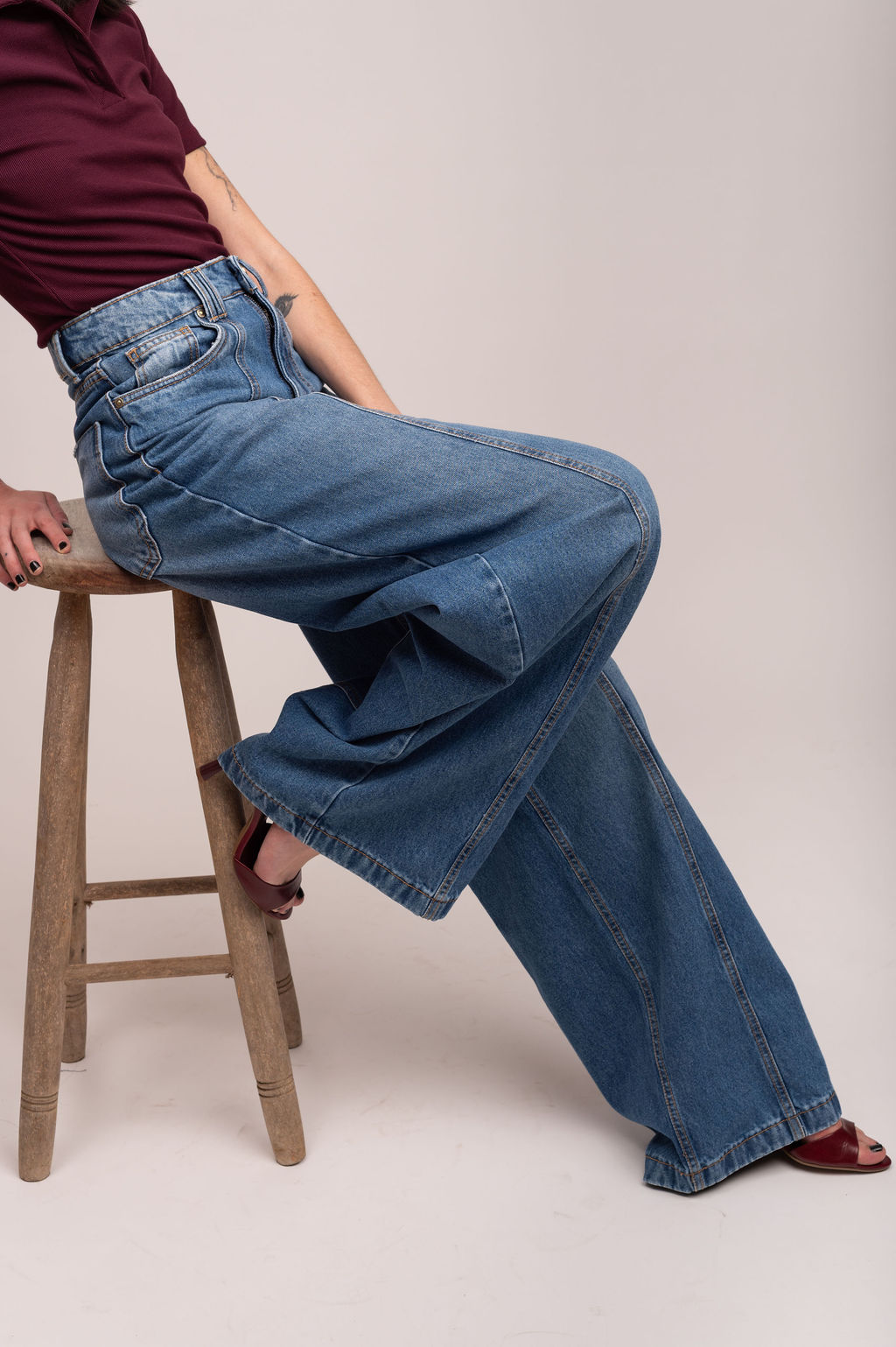 Sua modelagem de cintura alta com cós mais largo e passante duplo proporciona ajuste sofisticado. Os bolsos laterais e traseiros unem praticidade ao design. Fechamento com botão e zíper de metal garantem segurança, enquanto o detalhe de recorte frontal e traseiro adiciona um toque moderno e exclusivo.